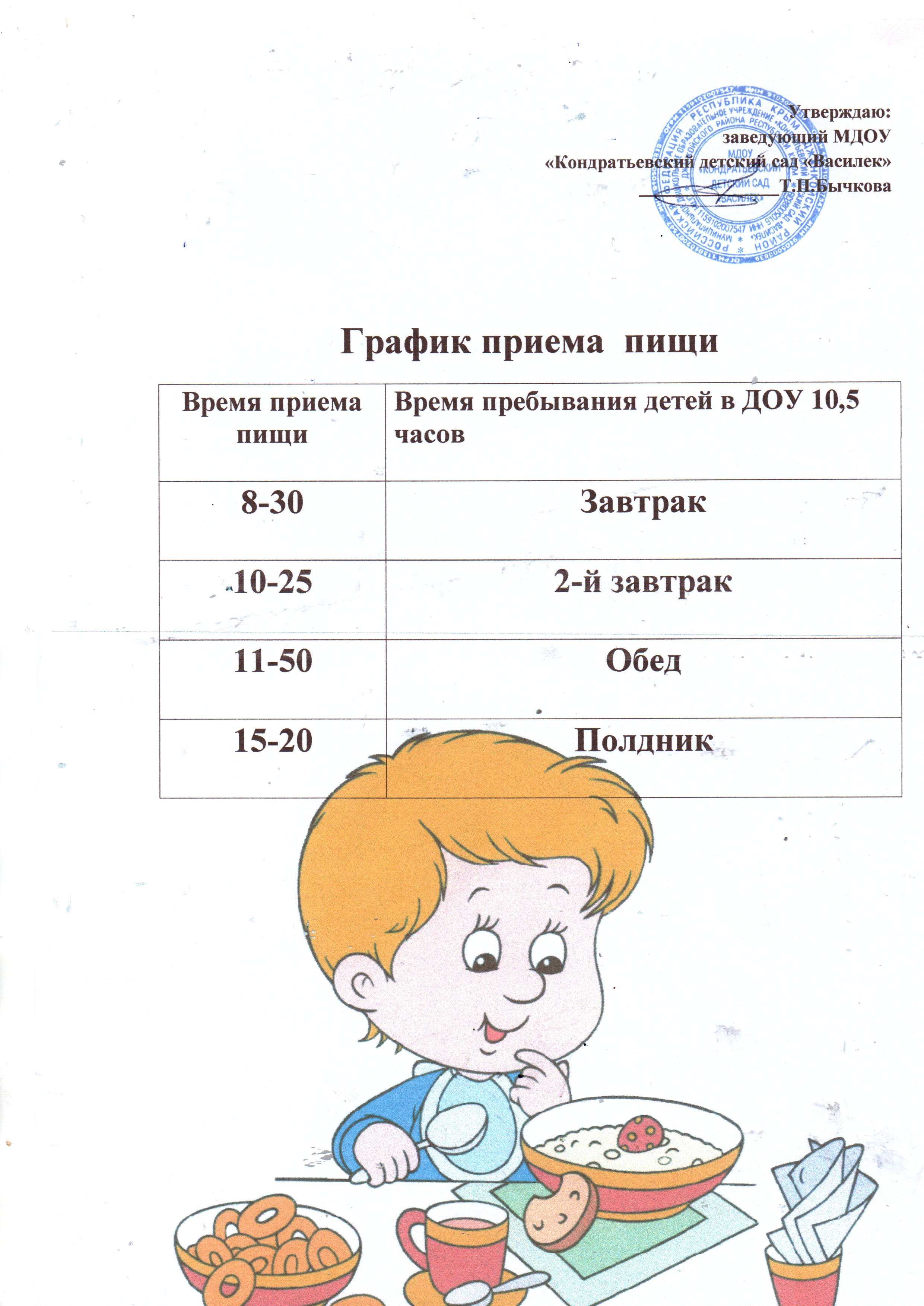 Время приема пищи | Время пребывания детей в ДОУ 10,5 часов |