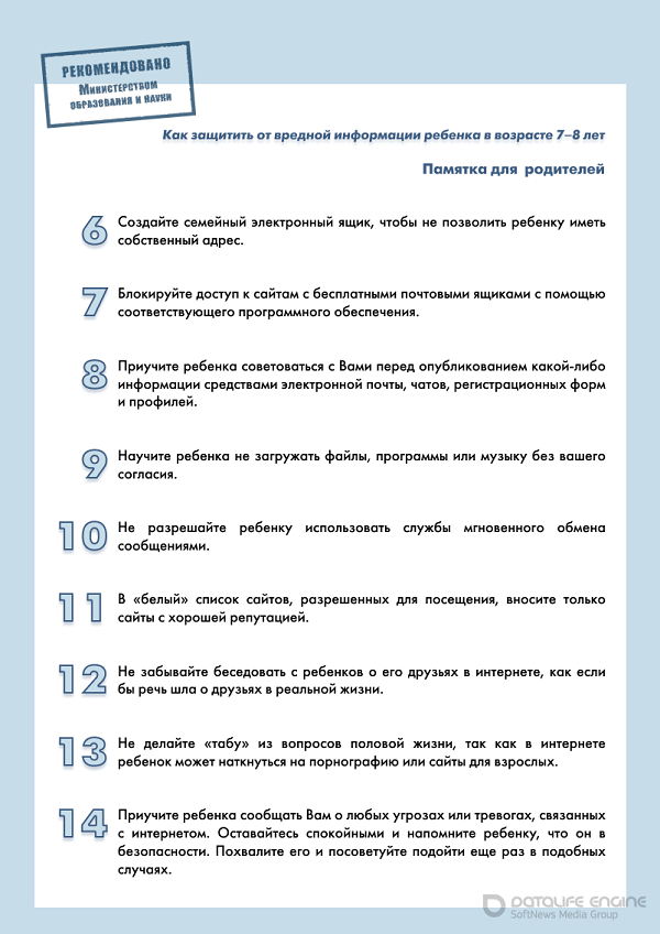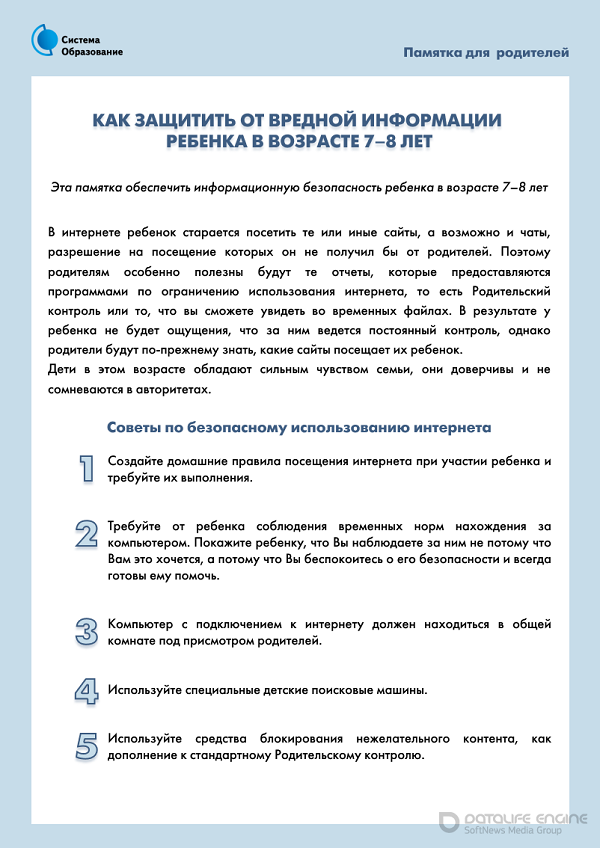 Советы по безопасности в сети Интернет для детей 7 - 8 лет