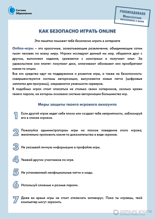 Обсудите с подростками проблемы сетевых азартных игр и их возможный риск. Напомните, что дети не могут играть в эти игры согласно закону.