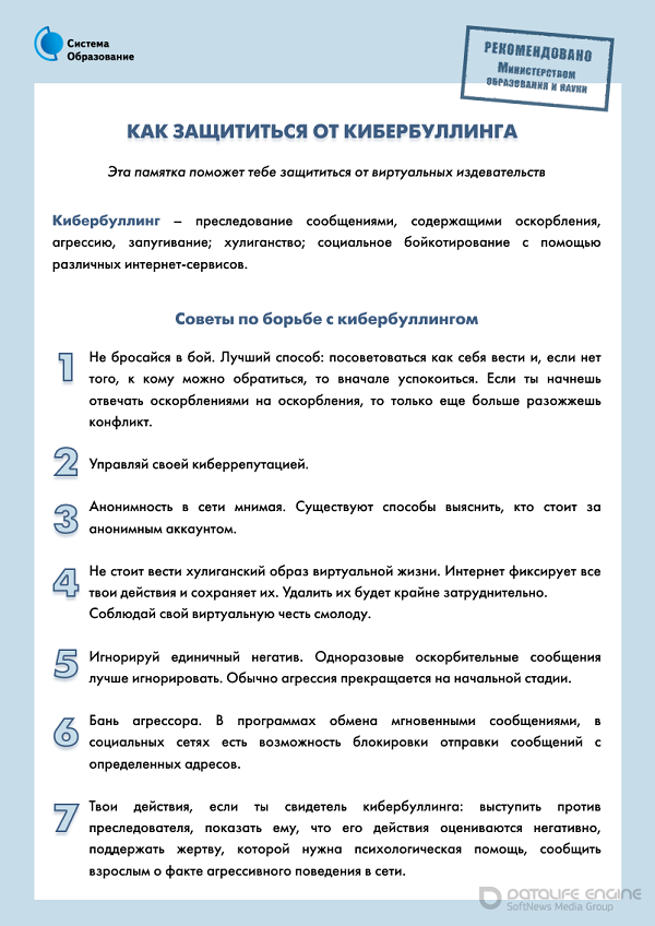Объясните детям, что нельзя использовать сеть для хулиганства, распространения сплетен или угроз.